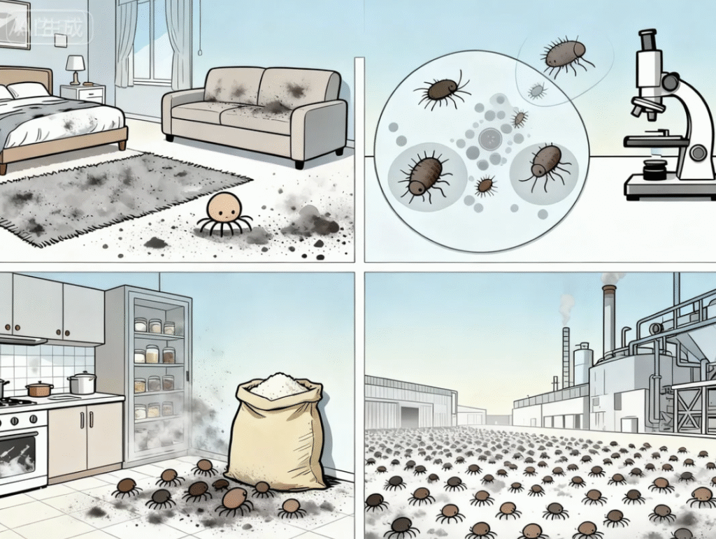 隨著生活品質提升,空調系統、加濕設備、地毯、壁紙、皮毛製品及羽絨用品等現代化設施逐漸成為家庭標配。然而,在享受舒適居住環境的同時,這些條件也為塵蟎創造了理想的繁殖環境。塵蟎主要棲息於地毯、沙發、軟墊、枕頭和被褥等柔軟織物中,而儲藏物蟎則在存放的食品和糧食中大量繁殖。