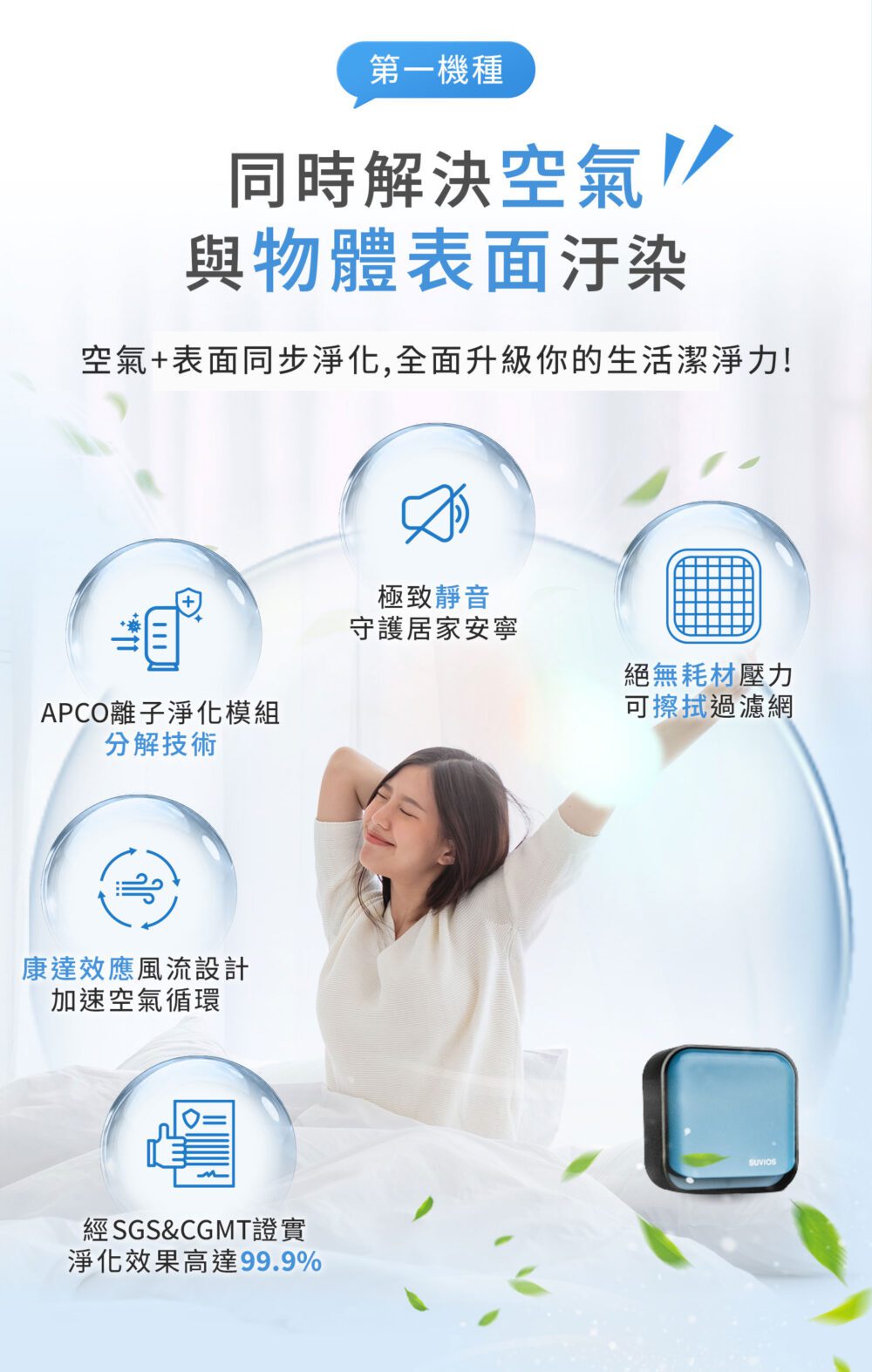 ※ 根據美國氣溶膠協會研究,真空紫外線 (VUV) 只需要 0.026 秒就能滅殺 99.9% 細菌。